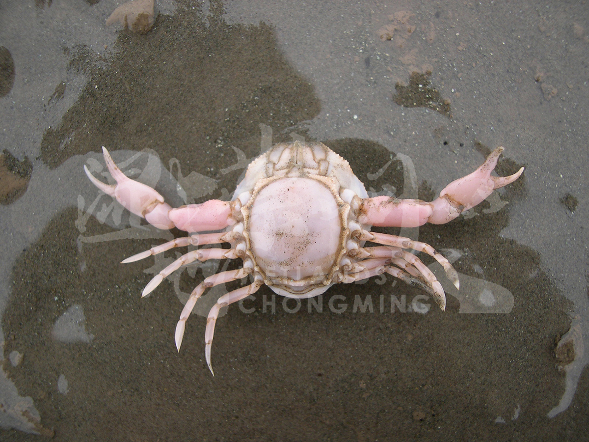 头胸甲长至22.7mm,宽21.7mm;表面隆起呈半球形,具颗粒。额窄而短,前缘平直。螯足粗壮,雄比雌大,长节呈圆柱形,背面基部及前、后缘均密布颗粒,两指内缘具细齿。步足近圆柱形,光滑,指节扁平,中间有1纵行隆线。 |