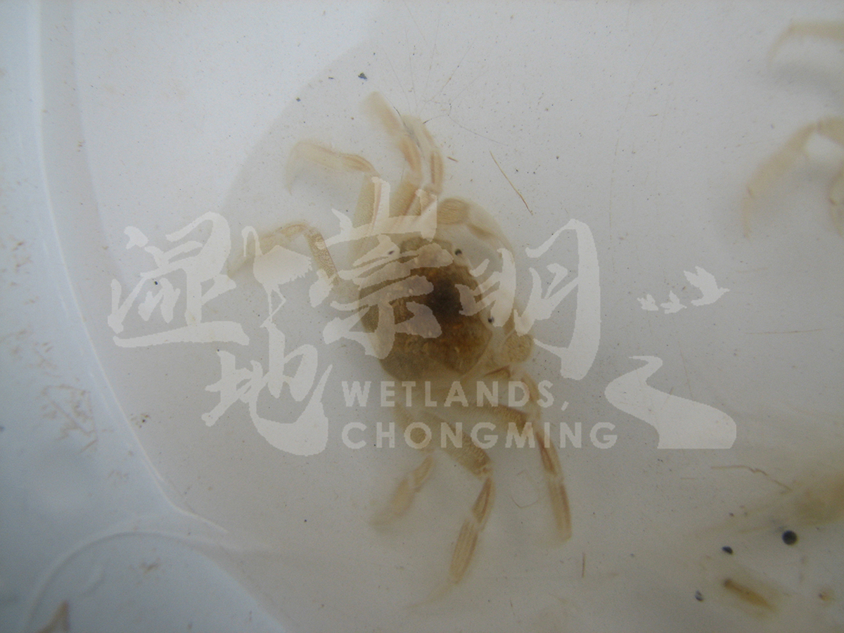 头胸甲长至20mm,宽至22mm;呈圆方形。额窄,前缘分成不明显的4齿,居中的2齿间的缺刻较浅。背眼窝缘凹入,腹眼窝缘下的隆脊具颗粒,延伸至外眼窝齿的腹面。前侧缘包括外眼窝齿在内共3齿。螯足掌部仅内面有毛。步足细长,各对步足前、后缘均具长刚毛。 |