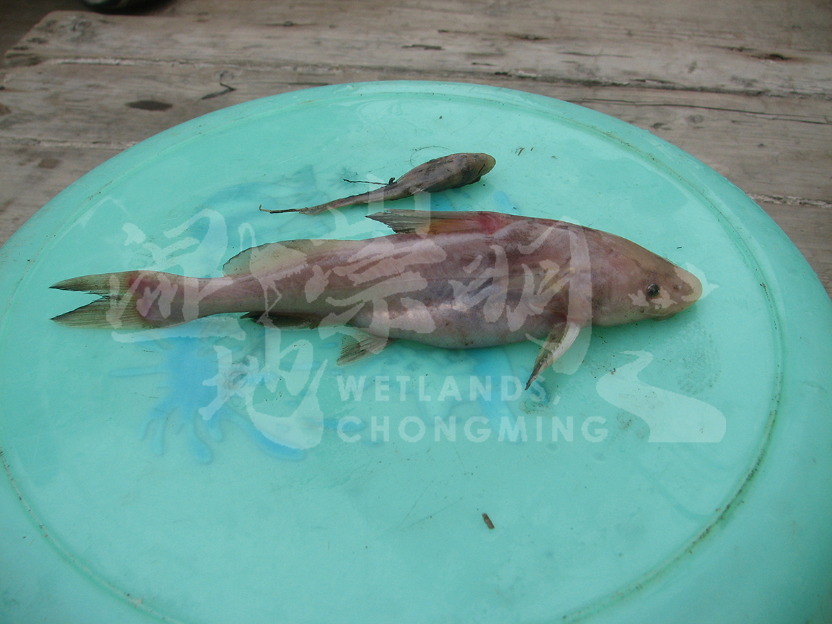 体延长,前部浑圆,尾部侧扁。头宽大于头高,吻呈锥形突出,眼小,为皮膜所盖。口下位,新月形,牙细小,密列呈绒毛状。须短,4对,体表无鳞,侧线平直。背鳍和胸鳍具硬棘,棘后缘均具锯齿。尾鳍深分叉。体侧粉红色,背部暗灰,腹部白色。在长江口外咸淡水交汇区内生活的个体,体侧有时具若干锈黄色斑块。 |