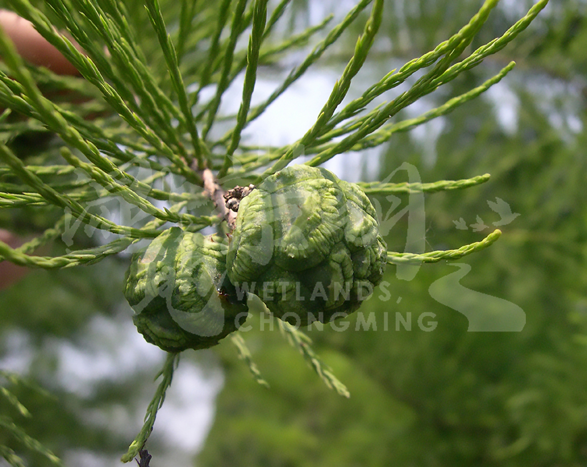 落叶乔木,高达50米,树干基部膨大,树干尖削度大,胸径可达2米,常有膝状呼吸根。树皮棕色,裂成长条片脱落;树冠圆锥形;主枝上升。叶多为钻形,在小枝上螺旋状排列,长1-1.5厘米,宽约1毫米,先端尖,上面中脉凹下,下面中脉隆起,每面具4-8条气孔线。雄球花卵圆形,有短梗,在小枝顶端排列成总状花序状或圆锥花序状;小孢子叶基部具4-9个花粉囊。球果球形或卵圆形,径约2.5厘米,有短梗;种鳞木质,盾形,顶部具纵槽。种子褐色,长1.2-1.8厘米,不规则三角形,有锐棱。花期3-4月,球果10月成熟。 |