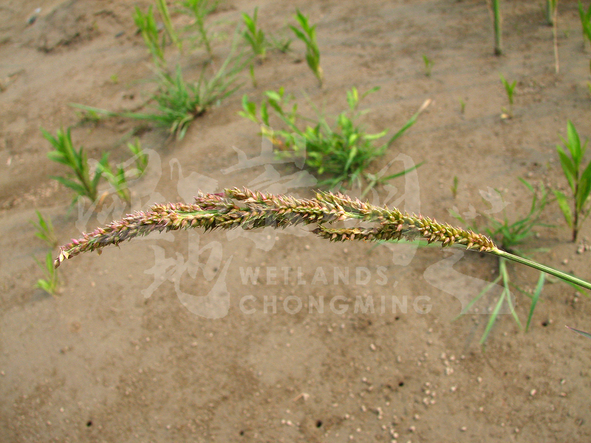 一年生草本。秆丛生,直立或膝曲,高50-75厘米。叶鞘平,无毛;叶舌缺;叶片常内卷,长5-20毫米,宽4-12毫米,上面常具疣基毛,边缘粗糙。花序直立,近尖塔形,狭,长11-19厘米,分枝上不再分枝;其中的总状花序短,贴向主轴。小穗卵状椭圆形,略带紫色,长3-4毫米,脉上被硬刺毛,无疣基刺毛;外颖三角形,长约为小穗的1/3;内颖与小穗等长,先端渐尖或具短芒;第一小花常不育;第一外稃草质,通常无芒;第二外稃椭圆形,平滑。花果期夏秋季。 |