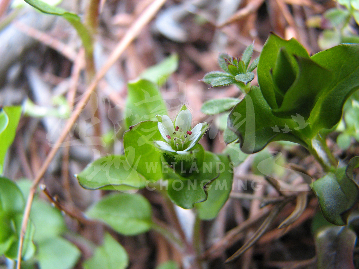 一年、二年生或多年生草本,高10-30厘米,具须根。茎匍匐或斜升,基部多少分枝,浅紫色,被1列毛。基生叶具长柄,茎上部叶无柄或具短柄;叶片卵形至卵状圆形,基部心形,顶端渐尖或急尖。花疏顶生或腋生为聚伞状;花梗花后伸长且下垂,细弱;花瓣长圆形,白色,2深裂至近基部,裂片线形或披针状线形;雄蕊3-5,短于花瓣;子房长圆形,花柱3,线形。蒴果卵球形,稍长于宿存萼片,6瓣裂。种子多数,卵圆形至扁球形,红褐色,表面具半球形瘤状凸起,脊较显著。花期6-7月,果期7-8月。 |