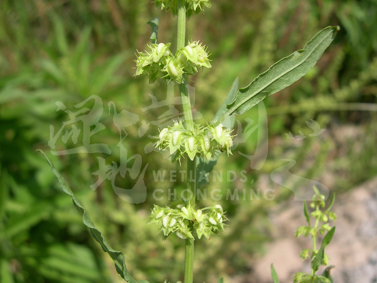 一年生草本,稀二年生,高30-70厘米。茎直立,自基部分枝,枝斜上,具浅沟槽。叶有长柄;叶片披针形或长椭圆形,基部圆形,边缘浅波状,顶端圆钝或急尖;托叶鞘筒状,膜质,早落。花序顶生或腋生,总状,直立,数个总状花序和叶组成圆锥状花序,花簇呈轮状排列,花轮间断;花梗中下部(约1/3处)具关节;花两性,黄绿色,花被片6,成2轮,外轮花被片椭圆形,长约2毫米,内轮花被片果时增大,三角状卵形,长3.5-4毫米,宽2-2.5毫米,具明显网纹,边缘每侧具2-4个不整齐的刺状齿,全部具小瘤,小瘤长1.5-2毫米。瘦果卵形,具3锐棱,长2-2.5毫米,黄褐色,有光泽。花期5-6月,果期6-7月。 |