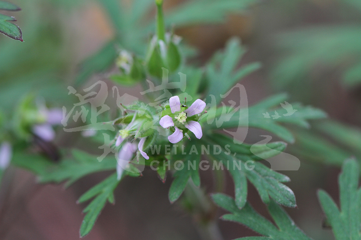 植物界Plantae (Kingdom) >被子植物门 Angiospermae(Phylum) >真双子叶植物类 Eudicots (Clade) >牻牛儿苗目Geraniales (Order) >牻牛儿苗科Geraniaceae (Family) >老鹳草属Geranium (Genus) >野老鹳草Geranium carolinianum (Species)